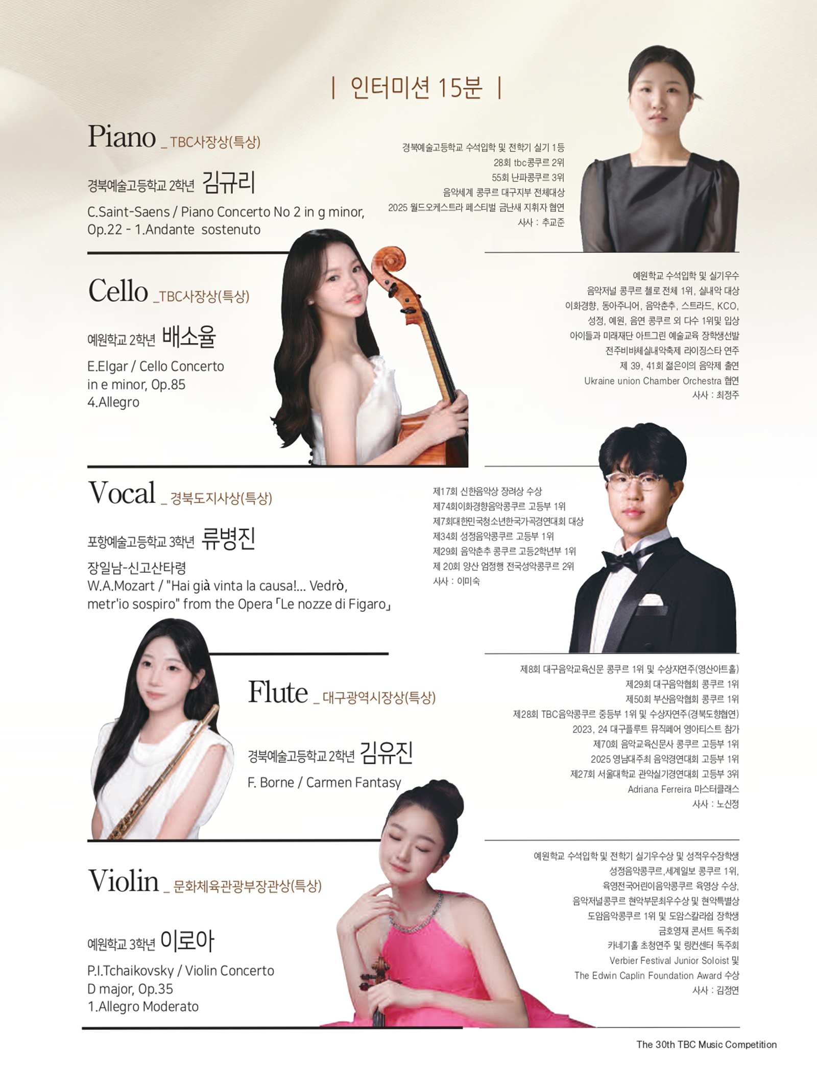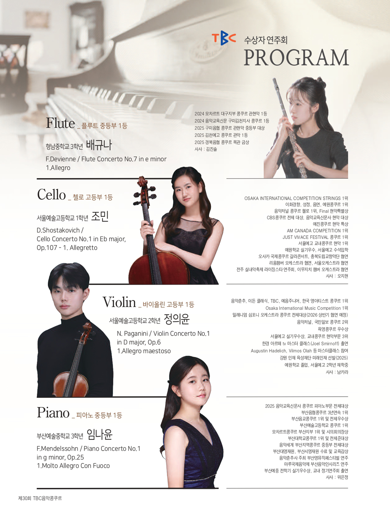 - 공연명 : 제30회 TBC 음악콩쿠르 수상자 연주회